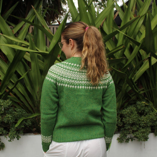 Harley of Scotland - Women's Two Tone Fairisle Jumper - Avocado/White