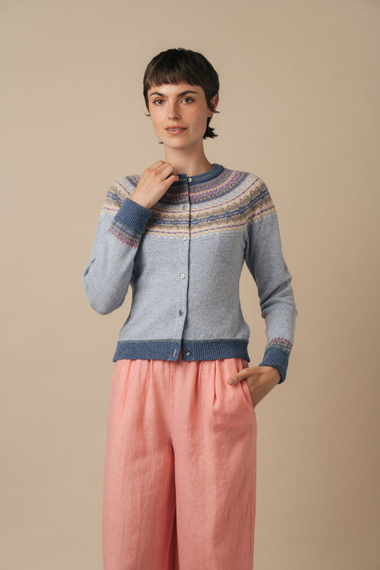 Harley of Scotland - Women's Two Tone Fairisle Cardigan - Blaize/White