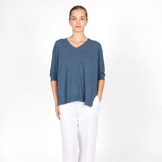 Zaket & Pover Essential Stripe Vee Top - Blueberry