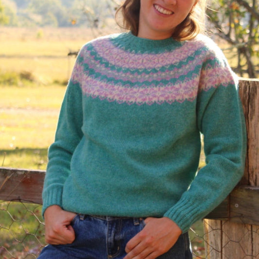 Harley of Scotland - Raglan Fair Isle Crew Jumper - Marble Gemstone