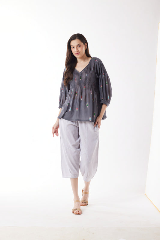 Au Hasard d'un Voyage - Pleated Round Neck Dress - People