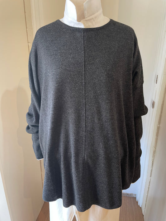Bridge & Lord - Curved Hem Crew Pullover - Coal