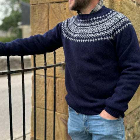 Harley of Scotland - Men's Two Tone Fair Isle Jumper - Navy / Mid Grey