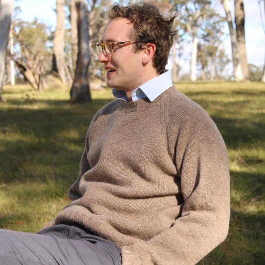 Harley of Scotland - Men's Chunky Crew - Scottish Knitwear - Nutmeg