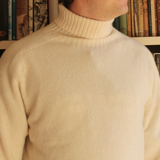 Harley of Scotland - Men's Superfine Roll Neck - Chalk