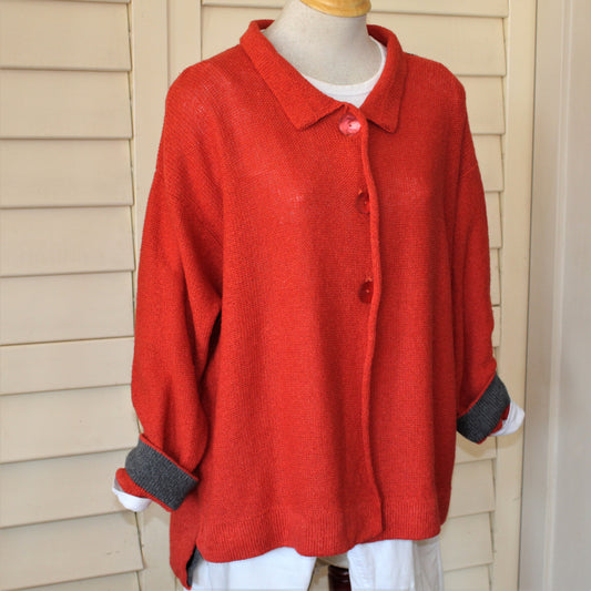 Letty Jacket- Orkney Island Hand Knit - Flame/Charcoal