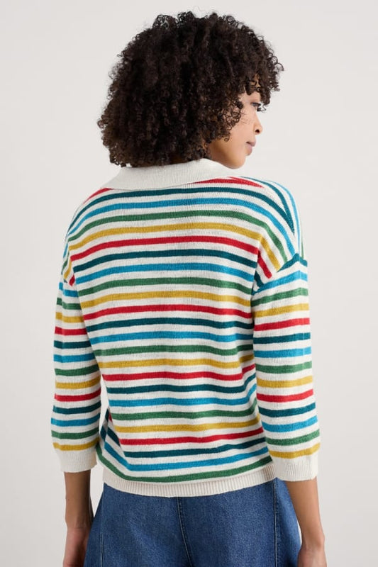 SEASALT - Gwynver Vee Collar Jumper - Mini Cornish Raspberry Multi